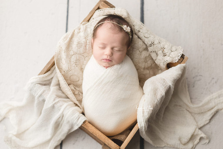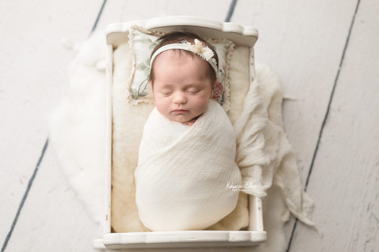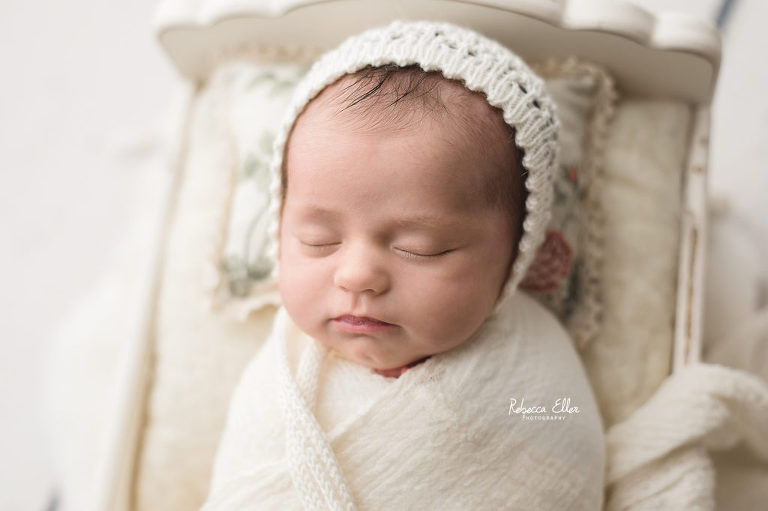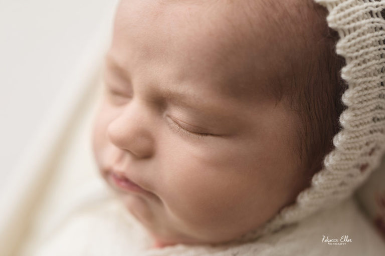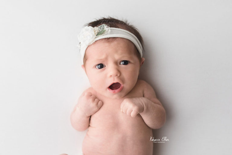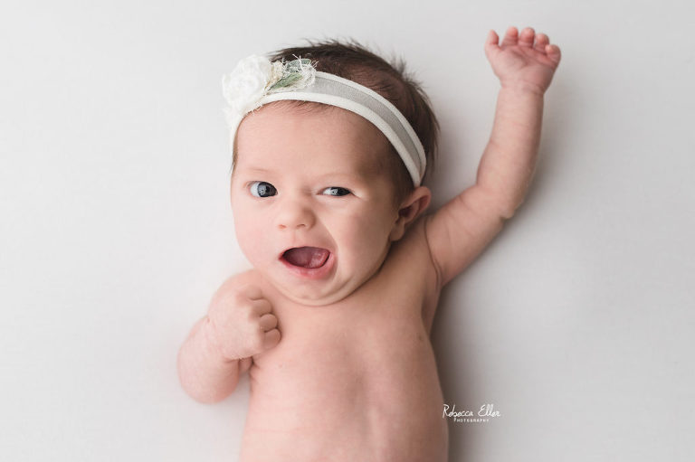This sleeping beauty was a month old when she came to visit me. It’s always unfortunate when I see or hear about other photographers not taking newborns after 14 days old. Yes, newborns are more sleepy in the first 2 weeks, but this baby definitely proved that wrong! She slept the entire time and was a dream to photograph. She only woke up when the session was over, which is when I like to get photos of baby doing their own thing and being them. Plus, look at that sweet dimple on her chin! I have photographed several older newborns and never turn away a family looking for photos of their baby because they didn’t schedule an appointment when they were pregnant or within the first couple of days after their new bundle arrived. Don’t let the idea of newborns need to be photographed before a certain age, because I would gladly take all the babies!
