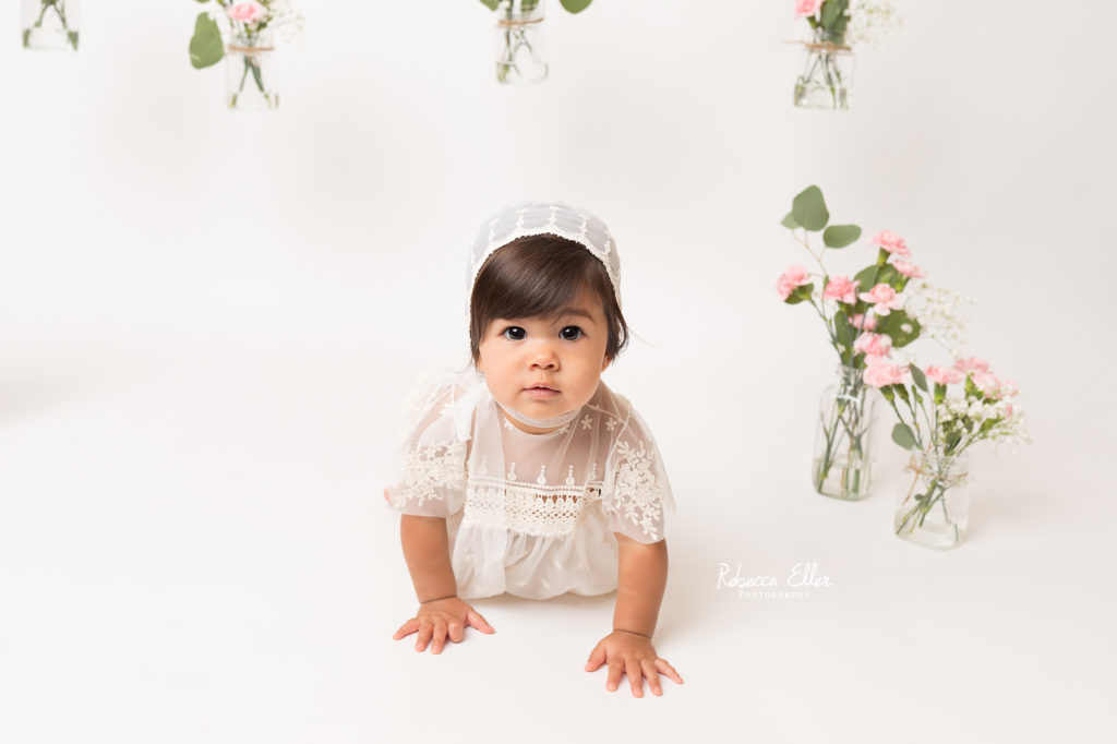 I’ve had the pleasure to photograph this beautiful baby girl when she was a newborn and 6 months old, and now I get to see her at one year old! I love seeing babies grow and see how much the same and different they look from a few months ago!