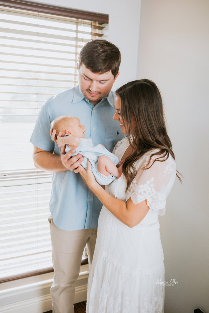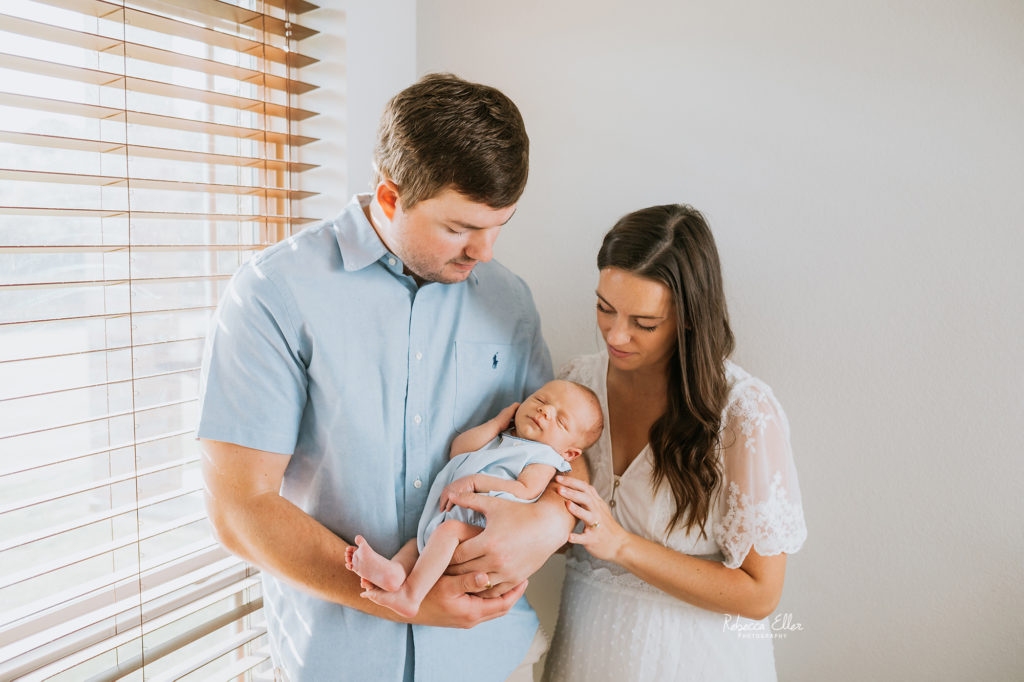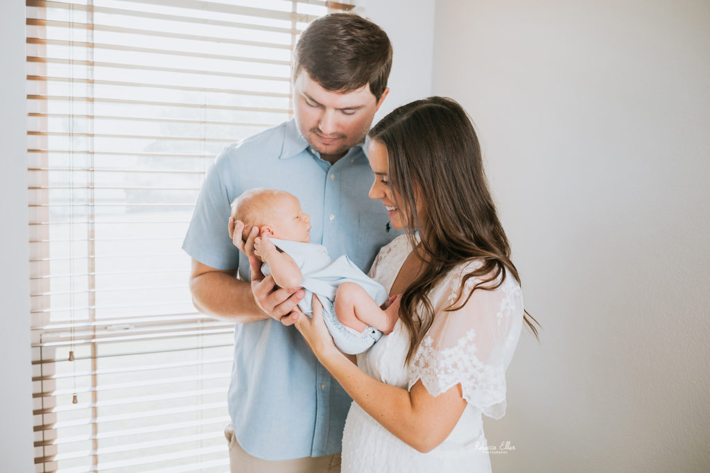 Are you wanting professional newborn photos taken of your new baby but don’t want to travel to a studio and would rather have photos taken at your home? I offer to travel to your home and bring my newborn props, roll up faux wood floor and swaddles. I do not travel with my backdrop but we can take photos against a blank wall, in the nursery, living room or near a window like the photos below! I just need an open space with a minimum size of about 6′ X 6′ to set up my lighting equipment. I have a travel fee based on mileage away from my home studio, if you are within 15 miles from White Settlement the fee is $75, if you are within 16-31 miles the fee is $100. Feel free to send an email with any questions for your in-home newborn session.