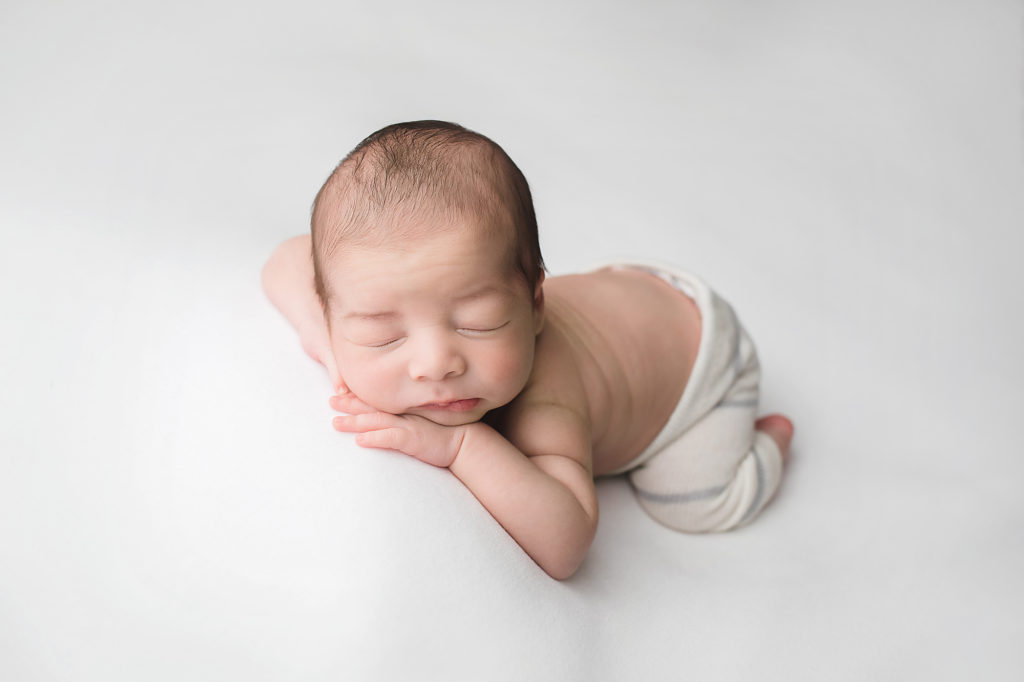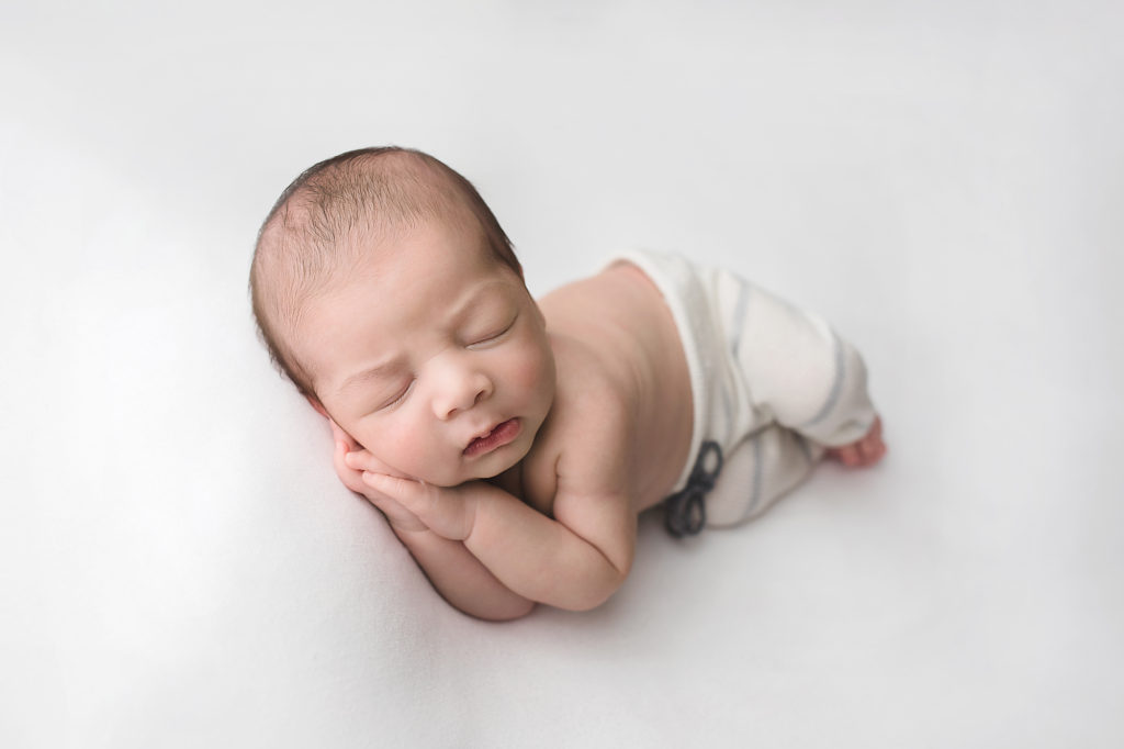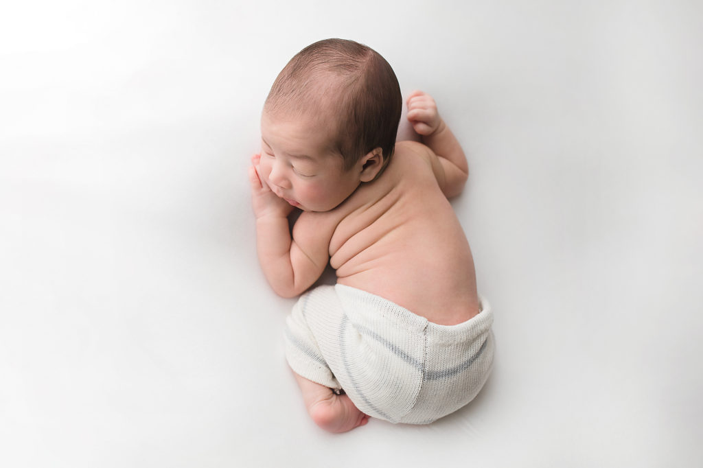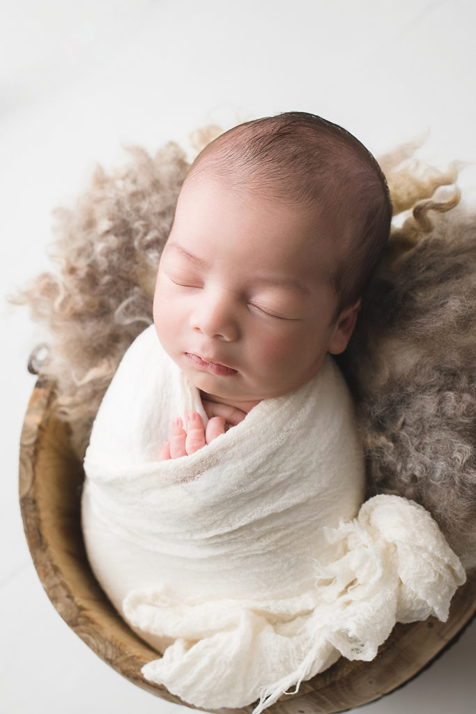 This sweet tiny little guy did perfectly for his newborn session. I don’t give parents a whole lot of instructions on what do to before the newborn session because I don’t like the idea of trying to keep your baby awake for an hour before the session, which I know some newborn photographers tell parents to do for prep before their baby session. I will ask when baby has eaten last, just to gauge on when baby might need another feeding. If it is within an hour of baby’s next feeding I might say to go ahead and feed early before the session, but it depends on if baby seems slightly fussy or is very sleepy on arrival. But I always work around the baby and let them dictate how the session goes. I will take feeding breaks as needed, and I try to move quickly to get plenty of photos while is sleepy because as you might know, babies moods can shift very quickly! You will definitely will see me sweating during the session, mostly because I’ll be close to the space heater with baby.