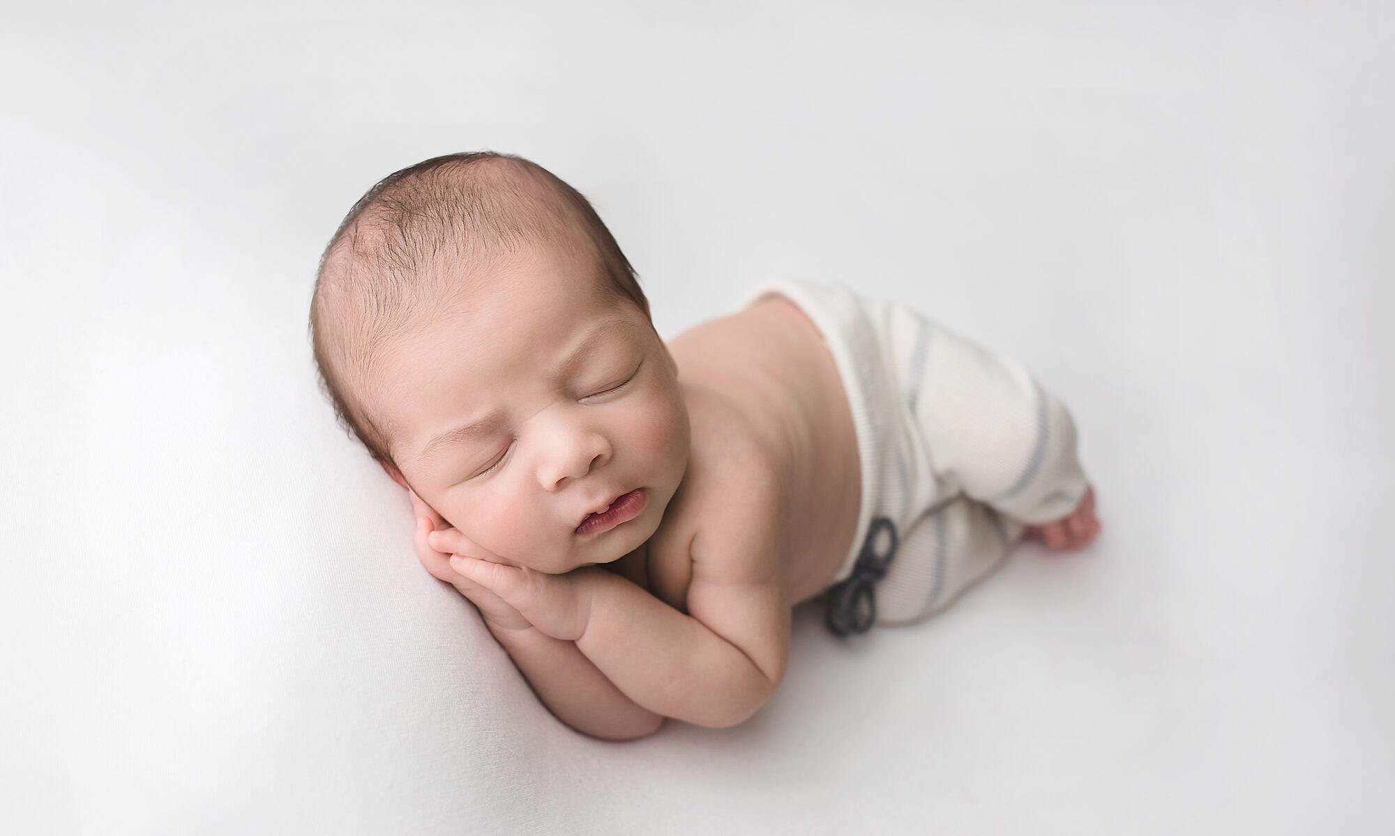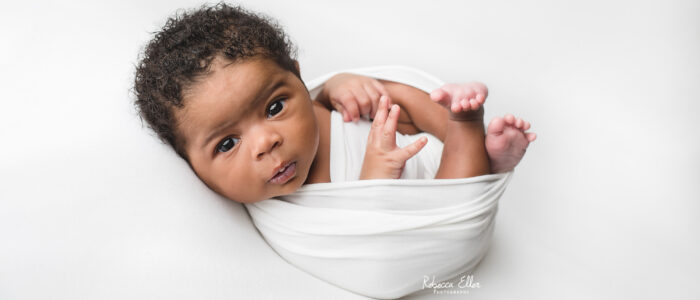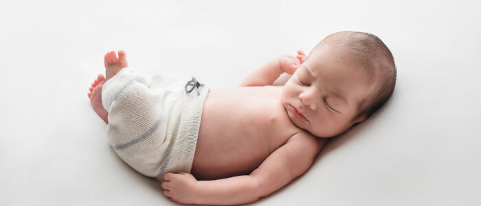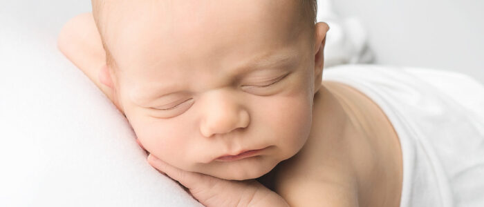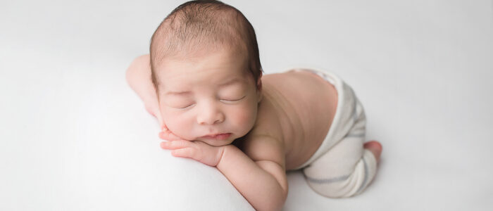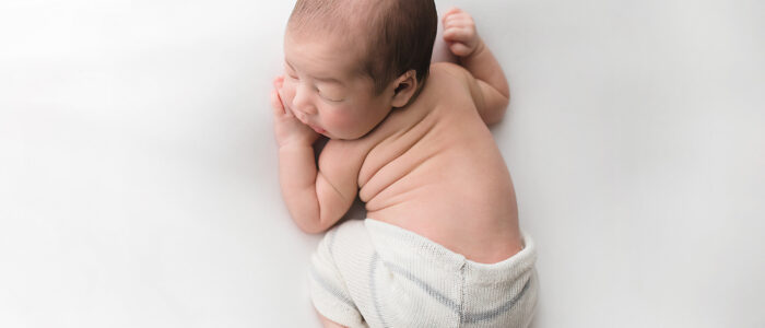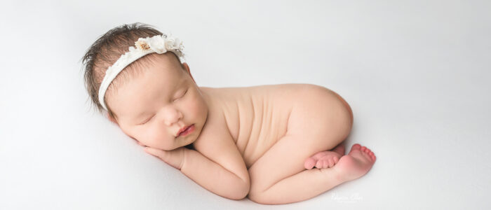 Newborns are typically photographed between 5-21 days old. I photograph newborns up to eight weeks old, though they may not be asleep for the session. After two weeks of age, babies are more likely to be disturbed while sleeping, sleep for shorter periods of time, and poses will need to be modified from the typical squishy baby poses.