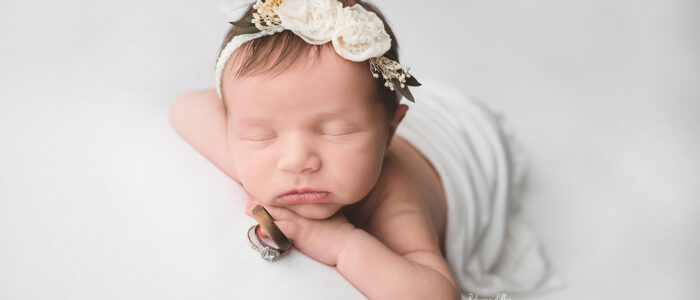 Besides your newborn, of course, bring extra diapers, wipes, formula if you are not breastfeeding, and a pacifier. Even if your newborn doesn’t quite take a pacifier yet, one can be very helpful to keep your baby asleep and/or calm as I transition them. I have a wide variety of beautiful props available for use, though you may provide a prop that is special or a family heirloom if you would like it incorporated. I use a space heater to keep baby’s body temperature warm throughout the shoot, leaving the room quite warm. Make sure you wear something light or layers that can be easily peeled off! If you are bringing a sibling with you, please bring something to keep them busy during the entire session.