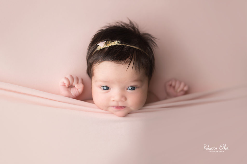 All the babies must have been born in June! This anxiously awaited beautiful little girl didn’t want to leave mom’s tummy, and mom was well prepared, she scheduled to have newborn portrait photos taken months in advance. She did so good the entire session up until it was time for the last set up to get the photo mom really wanted most! But after lots of milk and snuggles, she finally gave in!
