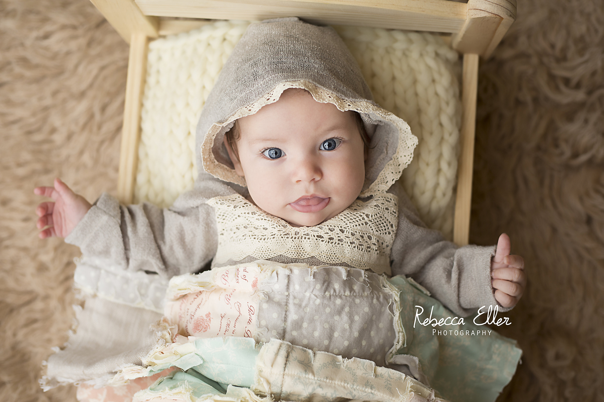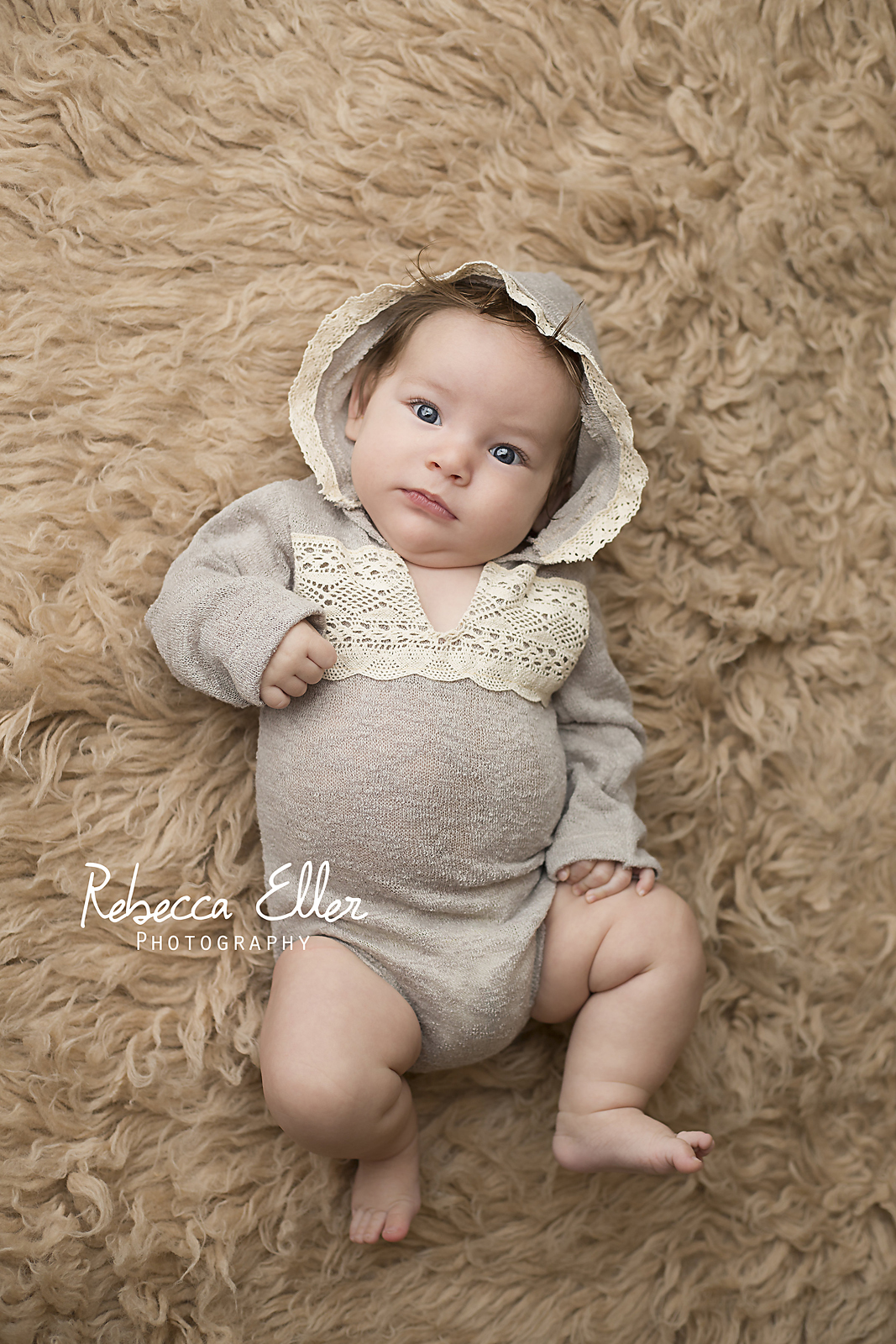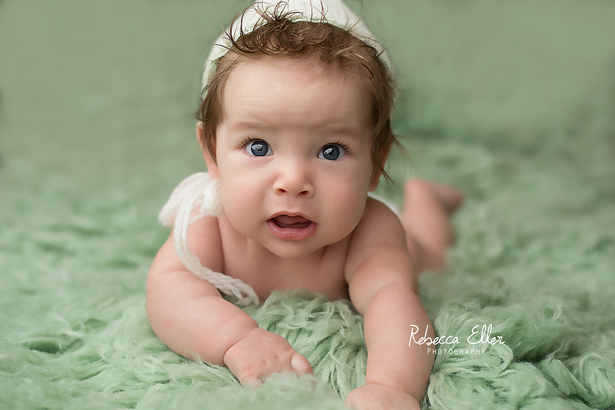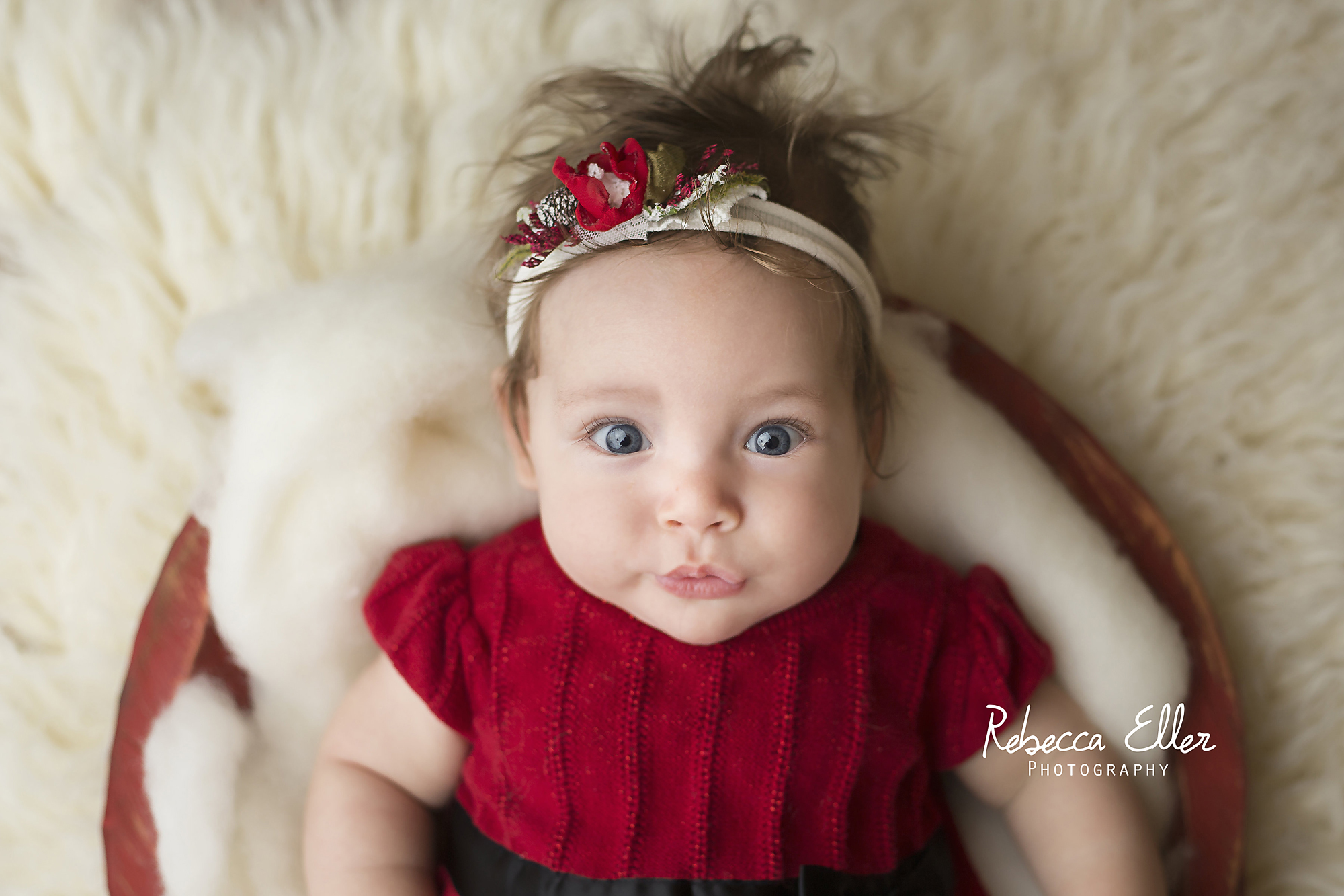 Two month old baby Anora came by for her first photo shoot! She was awake the entire time, but it’s expected with an older infant. She had such bright red hair and blue eyes! And those rolls! I wanted to keep her.