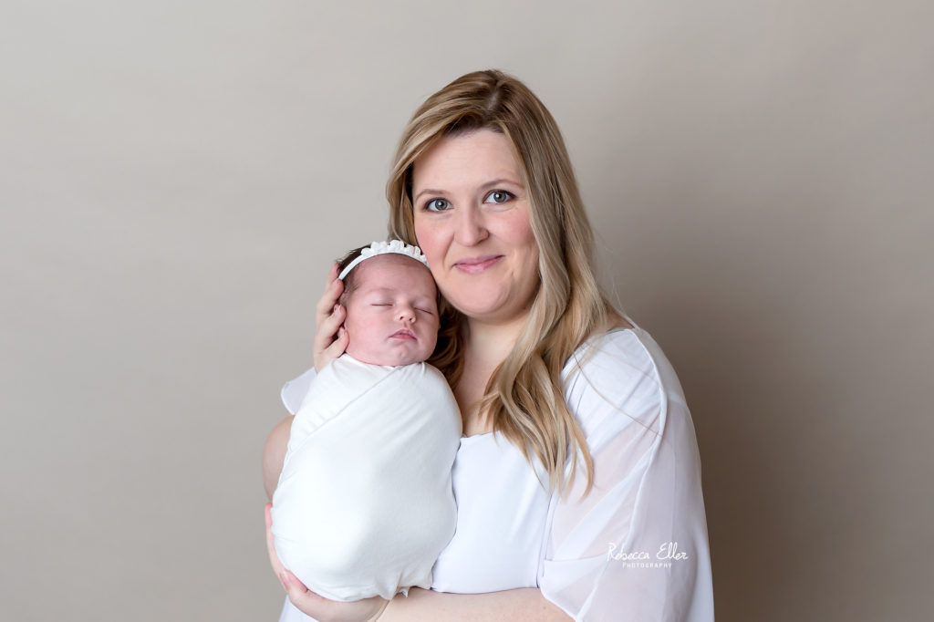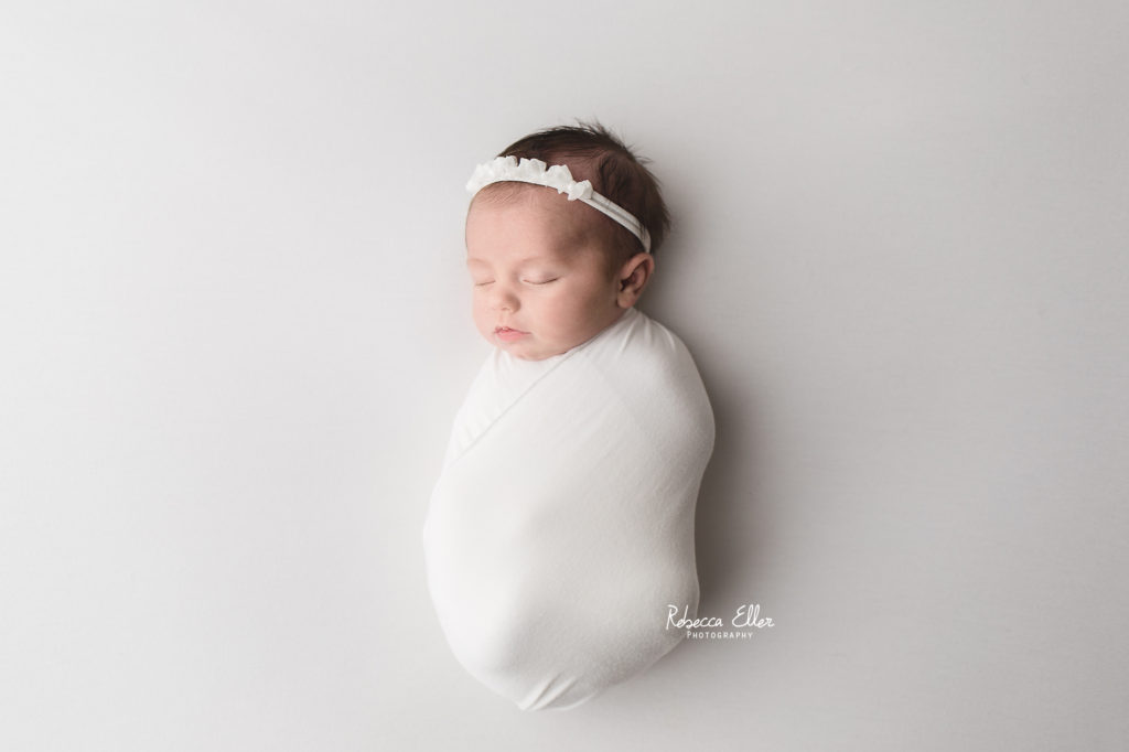 I recently started offing more of a lifestyle type session. My style has always been simple with minimal use of props, but now in this lifestyle type newborn session there are no props, just strictly baby in a white bodysuit or swaddle. It is a very airy light feeling of having baby unposed and natural on a white blanket backdrop.