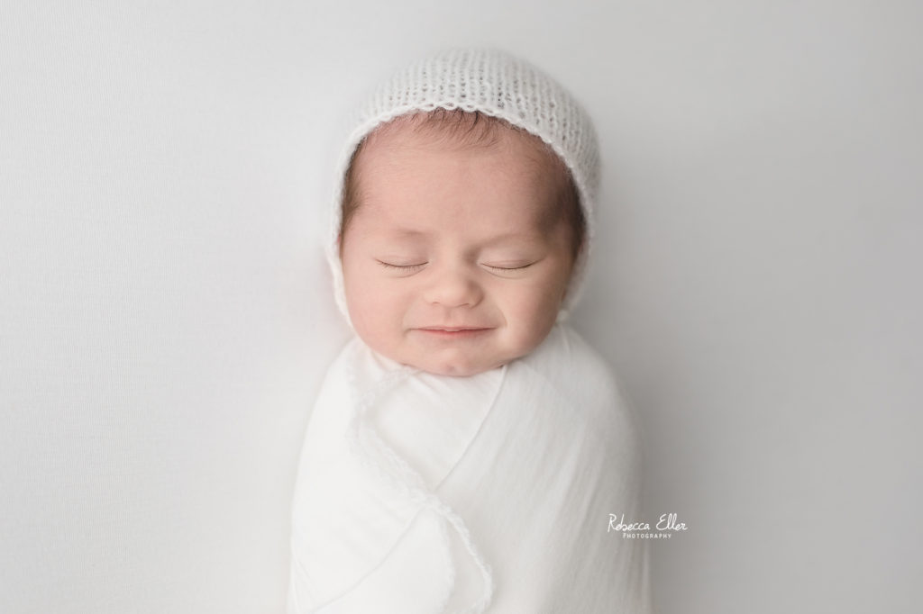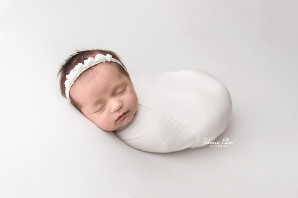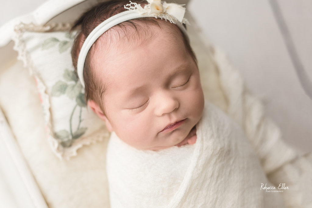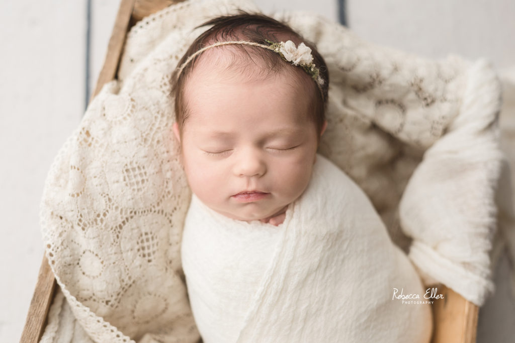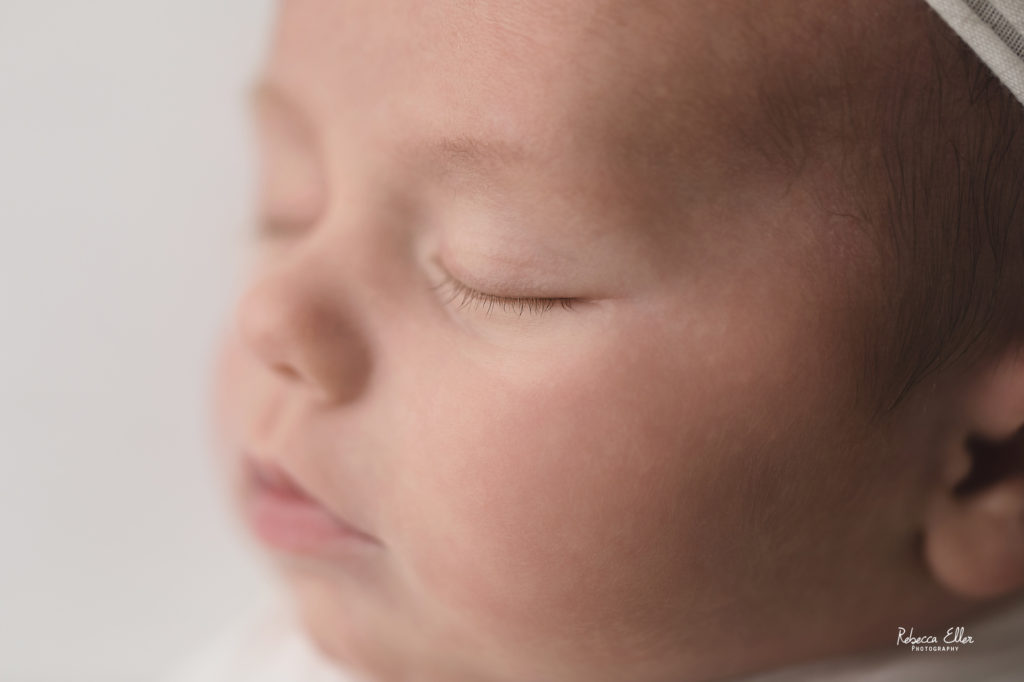 This sleeping beauty was a month old when she came to visit me. It’s always unfortunate when I see or hear about other photographers not taking newborns after 14 days old. Yes, newborns are more sleepy in the first 2 weeks, but this baby definitely proved that wrong! She slept the entire time and was a dream to photograph. She only woke up when the session was over, which is when I like to get photos of baby doing their own thing and being them. Plus, look at that sweet dimple on her chin! I have photographed several older newborns and never turn away a family looking for photos of their baby because they didn’t schedule an appointment when they were pregnant or within the first couple of days after their new bundle arrived. Don’t let the idea of newborns need to be photographed before a certain age, because I would gladly take all the babies!
