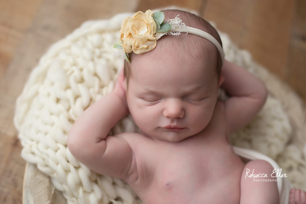This beautiful newborn baby girl had a full head of hair and slept like an angel! She came in for our Dainty newborn package and she was perfect for it! Too bad the session is only 35 minutes long because I know I could have kept posing her for way longer.