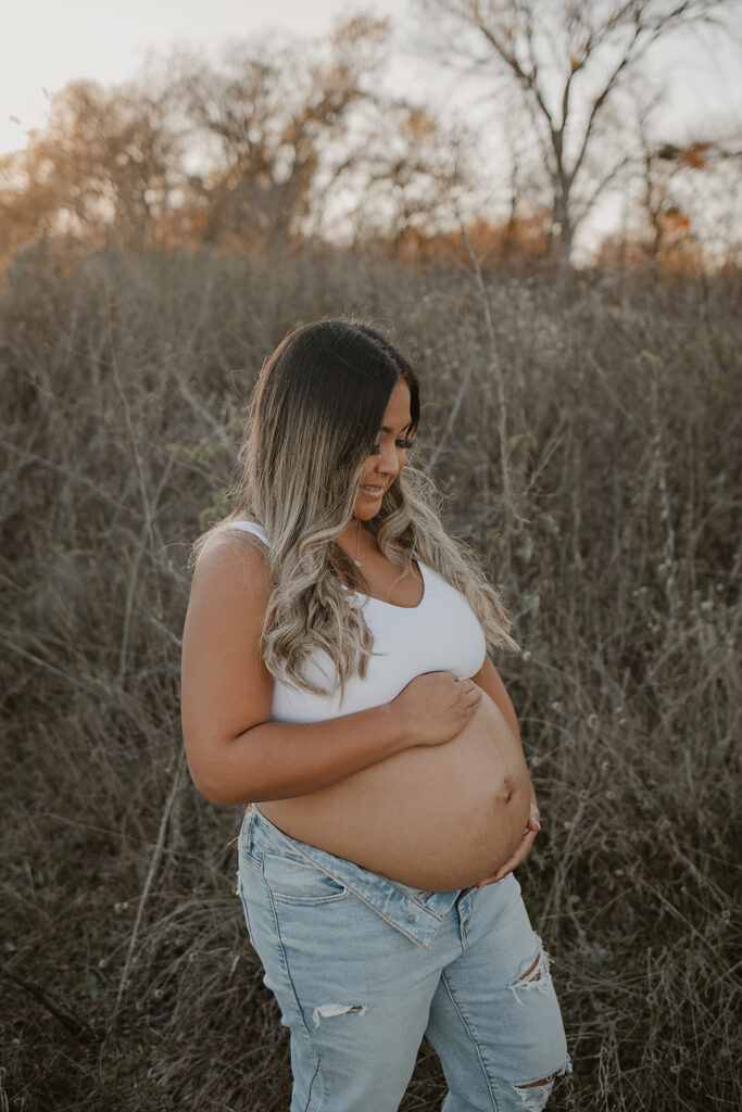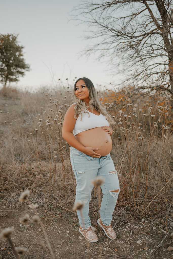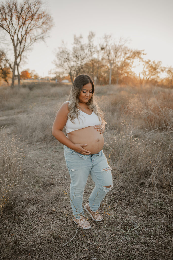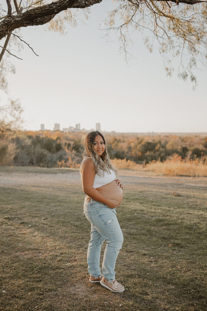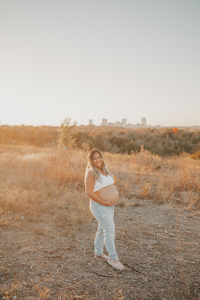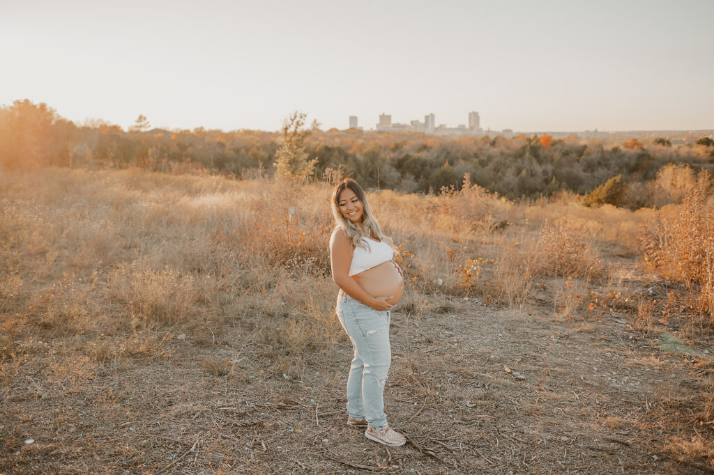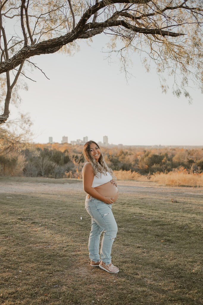 I hadn’t been to Tandy Hills Natural Area in over a year, it is always super crowded with photographers on the weekend and I think there had been a fire because the grass was burned and dead for a long time, but after enough time away, and several requests for this location, I decided to go back! Here is my latest maternity session at Tandy Hills in Fort Worth.